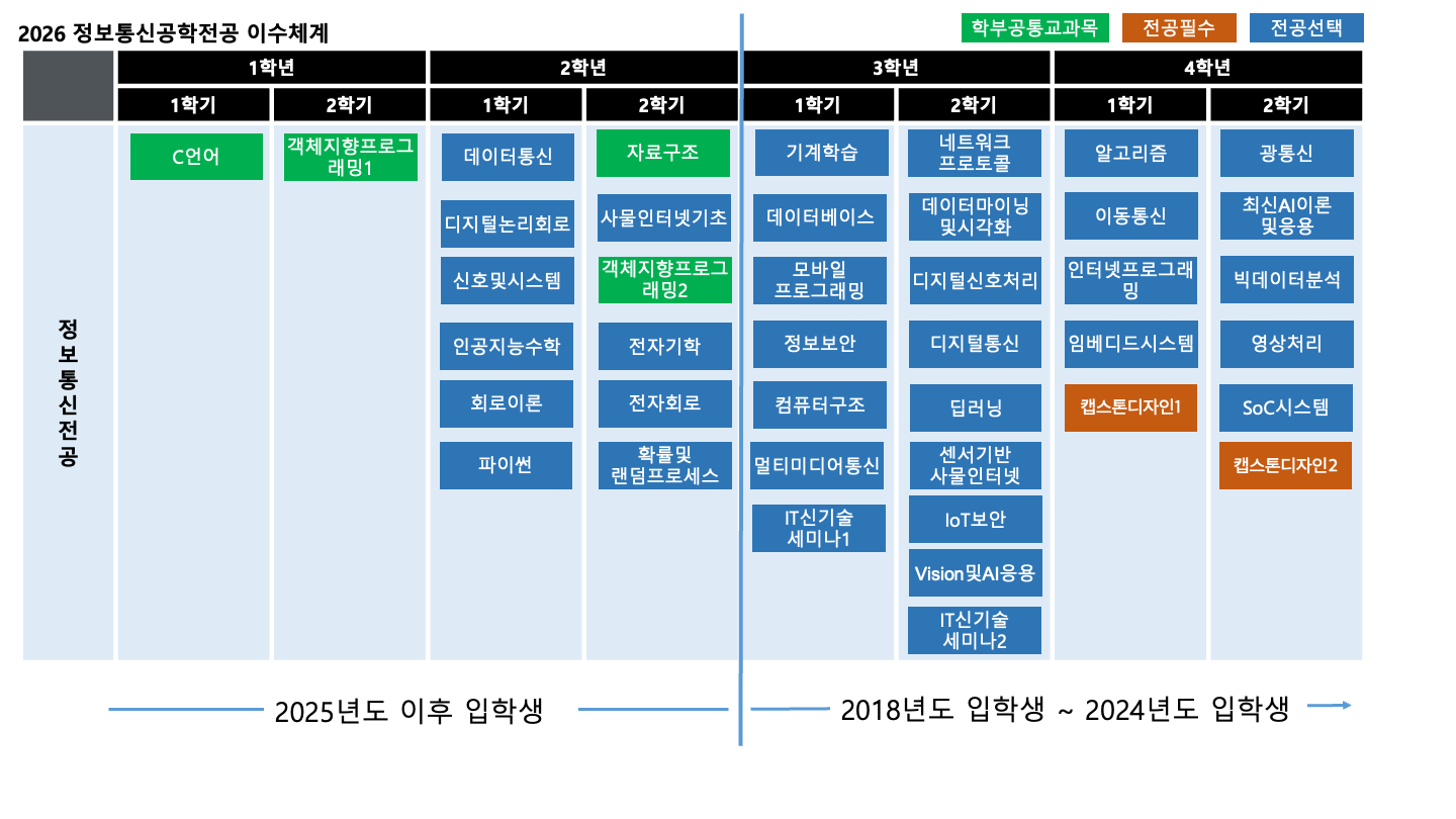 정보통신공학과(전공) 학문기초교양 및 전공필수 변경 사항